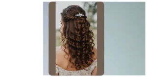 And just when you thought the hair couldn’t get any fancier, BAM! Check out that bling. The little sparkly hairpiece tucked into the side is like a secret crown for your head, making sure everyone knows you’re ready for a fancy celebration, not just a trip to the mall. Plus, those earrings? They’re basically mini chandeliers hanging from her ears! You know she’s feeling like a total superstar ready to hit the dance floor (or at least gracefully accept congratulations without her hair falling out).