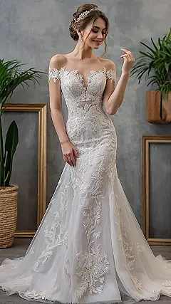Now, if you’re more about that romantic lace allure, keep your eyes peeled for those enchanting long-sleeved dresses. Picture this: a breathtaking mermaid silhouette that hugs your curves like a second skin, paired with delicate lace sleeves that flow with every movement. It’s the kind of gown that says you’re ready to strut down the aisle and make hearts melt all around. And don’t worry about your size; choices abound in every imaginable fit, ensuring you find a gown that flatters your beautiful form.