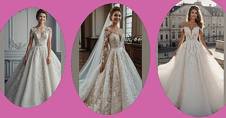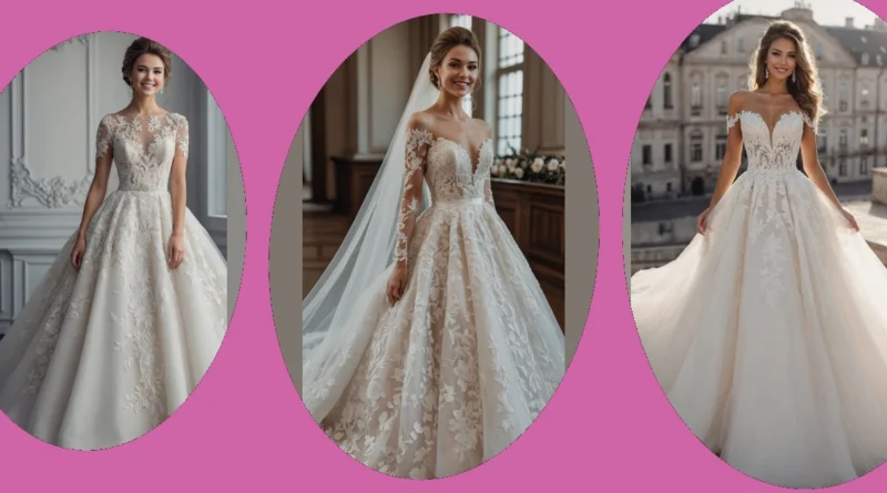 Take a look at this incredible wedding gown – it’s basically saying, ‘Move over, regular clothes, I’m here to sparkle!’ With its beautiful lace details on the sleeves and bodice, and that flowing skirt, it looks like it belongs in a fairytale… or at least a really fancy TikTok video. You can almost feel the ‘main character’ energy radiating from it. Just think about trying to navigate a crowded room in that gorgeous train; you’d need a personal assistant just to keep it from getting tangled, or worse, becoming a giant dust mop!