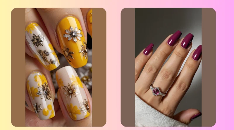 Forget boring solid colours; these flowery wonders are here to steal the show! The bright yellow is like a permanent dose of sunshine, and those cool metallic flowers are basically tiny pieces of bling that don’t require a safe. They’re so cheerful and pretty, they’ll make you feel like you’re strolling through a blooming garden, even if you’re just scrolling through photos of where you want to be. Seriously, these nails scream ‘I’m on vacation and living my best life!’ without you even having to say a word.