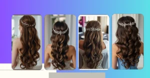 Let’s discuss a few options starting with hair down. Picture this: your hair cascading over your shoulders in beautiful curls, paired with a delicate veil that seems to float with every step you take. This hairstyle is perfect for the romantic in you, and it complements vintage-inspired dresses in the most enchanting way! Add a sprig of flowers or a dazzling tiara, and you’ll be turning heads—guaranteed! Who says simple can’t be stunning?
