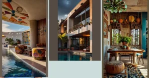 In this lively dance of color, balance becomes key, harmonizing energetic colors with soft neutrals for a cohesive look. Think deep terracotta floors grounding the bright walls, or delicate wooden beams juxtaposing bold accents that ignite the senses. Art and decor sourced from local artisans inject personal narratives into the spaces, while succulents and other native plants bring a touch of nature’s tranquility. The result is more than just aesthetic appeal; it’s a celebration of heritage and community, integrating modern comforts with the rich tapestry of Mexican culture, all wrapped in a vibrant embrace that truly feels like home.