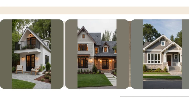 Check out this house! It looks like it was designed by someone who really loves their job, because every detail, from those cool exposed wood beams on the porch to the neat gabled roofs, just screams ‘I’m awesome!’ You can almost feel the solid vibe of this Craftsman house, like it’s saying, ‘Come on in, I’ve got enough sturdy charm to handle anything – even your little brother’s loudest video game session.’ The grey siding and crisp white trim give it that classic, timeless look, and that inviting stone pathway practically rolls out the welcome mat, making you want to grab a lemonade and chill on the porch.