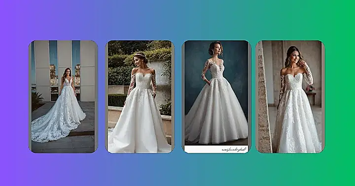Take a good look at this gorgeous wedding dress and you’ll probably think ‘fairy tale princess,’ right? All that beautiful lace, the flowing skirt, the elegant sleeves – it’s definitely a showstopper. But hold on, what’s hiding in plain sight? Yep, actual pockets! This bride can casually pose with her hands tucked in, probably carrying her phone for emergency TikToks or, let’s be real, a secret stash of snacks to get through those long wedding photos. It’s like the designers knew exactly what every grade 9 student (and future bride) truly dreams of: looking amazing *and* having somewhere to put your stuff.