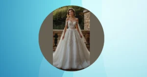 That dress is seriously charming! Look at all that lace – it’s like a whole garden of awesome carefully sewn onto the fabric. Imagine twirling around on the dance floor, feeling like a total princess or the main character of your own rom-com. You’d definitely steal the show from even the flashiest TikTok dancers at the reception.
