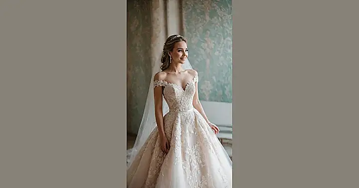 Check out this absolutely stunning dress! It’s giving serious main character energy with all that intricate lace and the way the skirt just flows like a dream. You can practically hear the “oohs” and “aahs” as someone glides down an aisle in this beauty, probably making everyone wish they had a dress this gorgeous. And while it might look like a classic wedding gown, if you look closely, it’s rocking a super chic, subtle hint of color – like a beautiful champagne or soft gold, which is basically the dress equivalent of saying, “I’m fancy, but also I know how to have a good time without being too loud.”