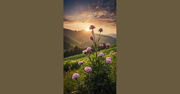 This picture is like a dream! Imagine waking up every morning and seeing this gorgeous view on your phone screen. It’s like a little piece of paradise, even if you’re stuck in boring old math class. Those flowers are so pretty, they’re practically glowing in the sunset light, and the hills in the background look so peaceful. It makes you want to go on an adventure and explore the great outdoors!