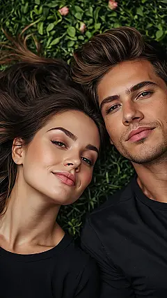 Thinking about upgrading your phone’s background? This picture is practically begging to be your next ‘couple wallpaper’! Every time you unlock your device, you’ll be greeted by this perfectly posed pair, looking like they just stepped out of a rom-com. It’s way more exciting than that default blue screen, and definitely less likely to give you actual grass stains than trying to recreate it yourself. Who needs real-life adventures when you’ve got this adorable duo smiling up at you, reminding you that true love (and great hair) exists, at least on your screen!