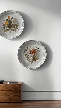 You know those fancy plates your aunt keeps in a display cabinet, strictly for looking, never for eating? Well, these wall decorations totally get it. These aren’t just any old room wall decor; they’re like the supermodels of the dinnerware world, too beautiful to risk getting ketchup on them. Instead, they’re gracefully hanging out, showing off their stunning floral designs and making your wall look like a secret garden party, but without the awkward small talk or the bees. It’s the perfect way to add a touch of classic cool to your space, all while keeping your actual dinner plates safe from artistic aspirations.