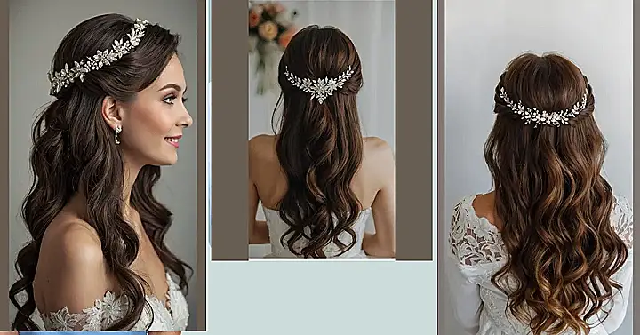 This hairstyle is like when you try to “accidentally” look cute for your crush, but dial it up to eleven for, like, a wedding! You’ve got the gorgeous, flowing waves that say, “Hey, I woke up like this,” but then BAM! That headband comes in, shining brighter than your future together, and screams, “Actually, I spent three hours perfecting this!” It’s the perfect balance of effortless and “I’m totally trying really hard,” which, let’s be honest, is most of us on picture day anyway.
