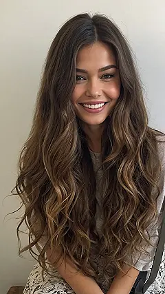 She’s giving off serious beachy vibes, even if she’s probably never even seen the ocean. And her hair color? It’s like a perfect blend of brown and caramel. It’s the kind of hair that makes you want to be friends with her just so you can touch it. Seriously, this girl has got the good hair genes. She’s a real hair goals inspiration!