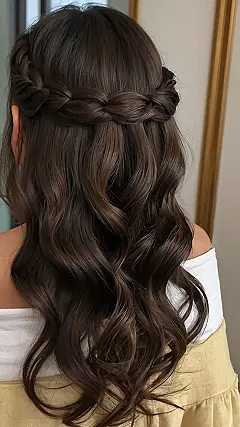 This hairstyle is seriously cute! Imagine rocking this look at your next school dance or even just hanging out with friends. The little braid crown is like a magical halo of awesome, framing some seriously luscious waves. It’s the perfect blend of “effortlessly chic” and “I actually put some thought into this,” which is a total win-win, right? Think less “frizzy mess” and more “beachy waves but way cooler.”