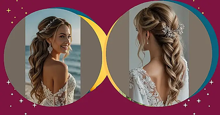Let’s kick this off with a delightful half up half down option. It maintains that effortlessly chic vibe while still showing off those stunning waves. Plus, for our lovely Pakistani brides, you can seamlessly blend cultural elements into this simple style—it’s all about adding the right touch to showcase your heritage while looking fabulous.