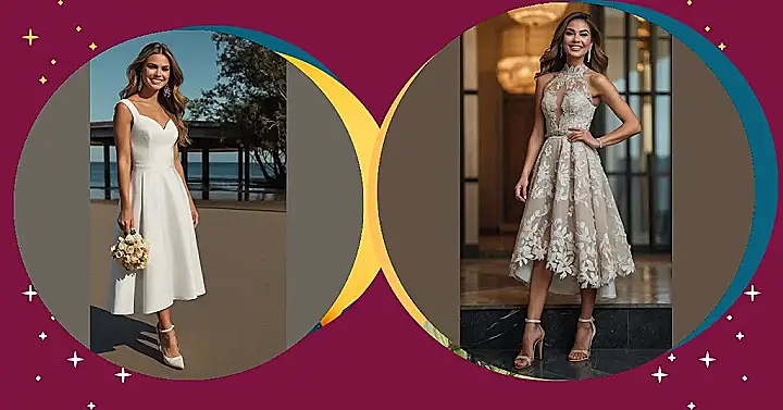 This isn’t your grandma’s stuffy wedding gown; this bridal outfit is all about being chill and stylish. Ditch the ballgown and embrace the freedom of this knee-length beauty. Imagine all the fun you’ll have dancing in this, without tripping every five seconds! It’s like, “Yeah, I’m getting married, but I’m still totally myself.” Now that’s a winning combination!