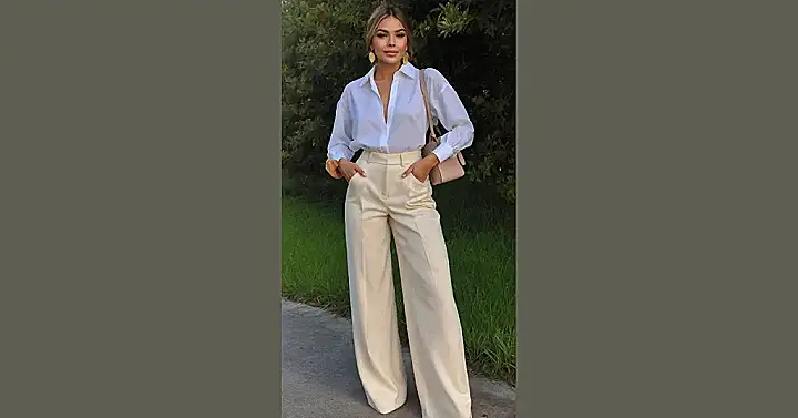 Stepping out in an outfit like this means your weekend plans just got a serious upgrade, whether you knew it or not. You can’t wear those amazing wide-leg pants and a crisp white shirt just to water the plants! This is an outfit for making memories, turning heads, and probably making everyone wonder what incredibly cool thing you’re doing. It’s the ultimate “I’m dressed up but still having fun” look, perfect for a spontaneous fancy coffee run or just feeling like the main character in your own weekend movie.