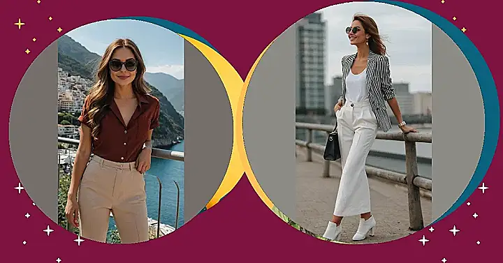 This isn’t just a casual Saturday stroll kind of outfit; it’s more like a “chasing sunshine and good vibes” ensemble. With that crisp white top and those cool wide-leg pants, she’s ready for anything from a fancy museum visit to gracefully navigating a busy farmer’s market, probably even outshining those gorgeous pink flowers! It just goes to show that your weekend doesn’t have to be just Netflix and chill; sometimes it’s about embracing bold colors and looking like you own the entire glorious two days.