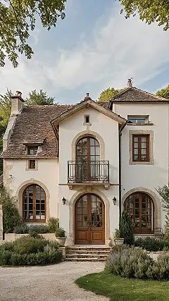 Check out this French cottage house! It looks less like a simple cottage and more like it’s trying really hard to be a castle, but in a super cozy, slightly chipped-paint way. Those arched windows are so extra, they probably expect you to curtsy before looking through them. And that little balcony? Perfect for pretending you’re a movie star or just waving awkwardly at squirrels who dare to trespass on your fancy French turf.