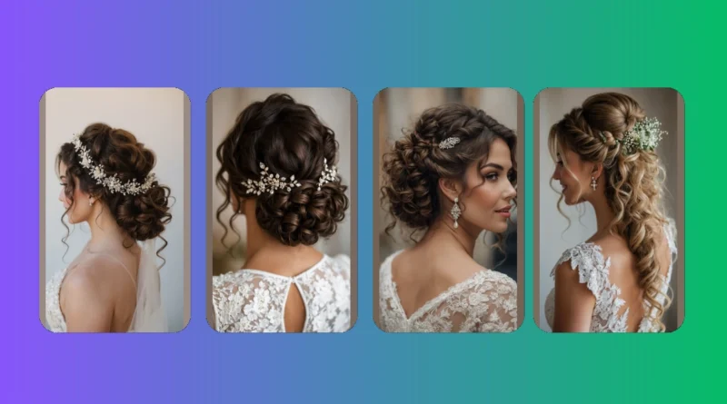 Finally, for those who want some flow and movement, a half up half down hairstyle with a low bun can be just the ticket. It combines elegance with a relaxed vibe, giving you the best of both worlds! You can sport a lovely braid while some curls dance around your shoulders, enhancing your bridal beauty. So gather those curls and get excited to say “yes” to the perfect look that complements your happiness on your big day!