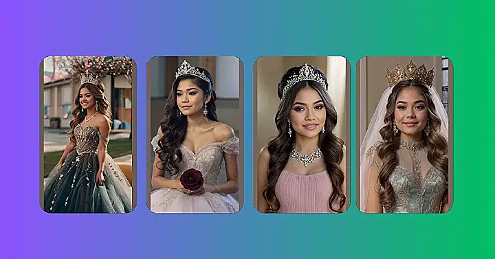 As the music fills the air and loved ones gather around her, the quinceañera’s chosen hairstyle becomes not just a fashion statement but a symbol of her transition into womanhood. Whether she opts for a classic half-up hairstyle adorned with delicate flowers or a glamorous side-swept chignon with dazzling hairpins, each style speaks to the unique personality and style of the young queen of the evening. Let her hair be her crowning glory, a reflection of the radiant confidence and inner strength that mark this significant milestone in her life.