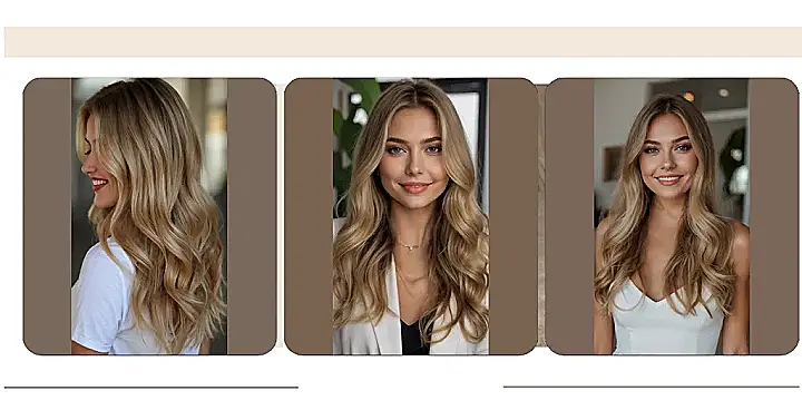 This picture perfectly shows what happens when blonde and brown hair decide to team up instead of fighting over who gets to be the star. It’s like they had a secret meeting and said, “Hey, let’s just create one super cool, wavy masterpiece!” The way her hair flows with those gorgeous golden and caramel tones makes you wonder if she spent hours deciding or if she just naturally nails the ‘best of both worlds’ look. Forget trying to pick between dark and light; this style confidently declares, “Why not have both, and make it look absolutely fabulous?”