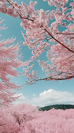 Imagine walking through this landscape. You’d be surrounded by a sea of pink, with the soft morning light making everything look even more magical. Maybe you’d even spot a fluffy pink unicorn hiding in one of those trees! Seriously, this picture is so pretty, it almost hurts my eyes in a good way, you know? It’s the kind of place where you could just forget all your worries and get lost in the beauty.