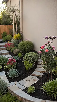 Thinking about what you could add to a space like this? How about turning old soda cans into charming little planters for herbs, or painting some rocks to look like mini garden creatures that surprise visitors peeking from under those bushes? You could even string up solar-powered jars for a cool glow at night, making those stone steps even more magical. These simple garden crafts aren’t just about making things look nice; they’re about injecting your unique sense of humor and style into your outdoor space. It’s a fantastic way to make your garden stand out and prove that you’re not just good at growing plants, but you’re also a master of outdoor fun!