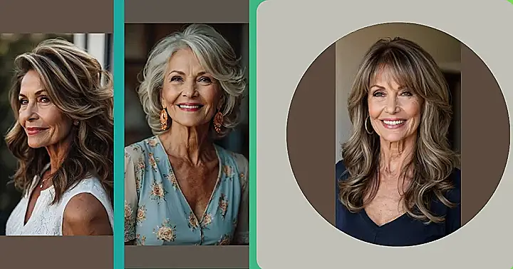 This woman is totally rocking those layers! Her hair is like a waterfall of soft, flowing strands that look super stylish. It’s proof that you can look absolutely amazing at any age! She’s got a bright, happy smile that could light up a whole room. It’s like she’s saying, “Hey, I’m over 50, but I’m not over the hill! I’m still young at heart, and my hair’s got my back!”