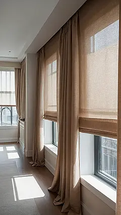 But wait, there’s more to these room curtains than just being sunblock superheroes! Look at how they dress up the windows in the image, adding a super relaxed yet elegant touch that makes the whole room feel instantly cozier. They’re like the ultimate outfit for your windows, transforming a simple opening into a stylish statement. Plus, they definitely save you from that awkward moment when you forget to turn off your camera during an online class and the sun blasts through your window, making you look like a ghostly apparition. Curtains for the win!