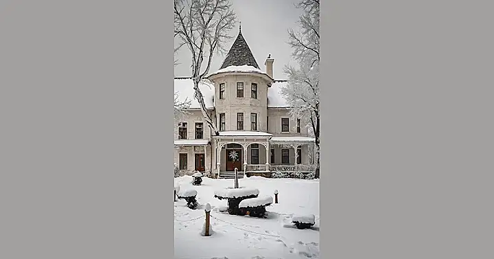 This place looks like a giant gingerbread house, but instead of icing, it’s got a thick, fluffy coat of fresh snow that makes you want to dive right in (maybe don’t actually do that, unless you have a giant hot cocoa landing pad). With that cool turret and all those snowy branches, it’s like a scene straight out of a festive movie where the main character solves mysteries while sipping warm cider. We bet finding your car in this kind of snow would be an adventure, probably requiring a treasure map and a very sturdy shovel! This stunning view definitely deserves a spot on your screen as the ultimate ‘winter wallpaper’.