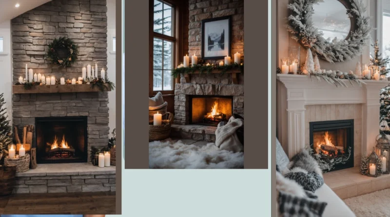 Looking at this cozy setup, you can practically feel the warmth radiating, right? The crackling fire is doing its best impression of a soothing lullaby, while those strategically placed candles are basically tiny spotlights making everything glow extra special. It’s the kind of winter fireplace decor that makes you want to cancel all your plans, throw on your comfiest sweats, and maybe even challenge your family to a board game. Plus, with a scene this inviting, you just know that fireplace is secretly competing for the “Most Relaxing Spot in the House” award, and it’s totally winning.