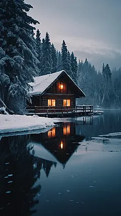 This picture makes me want to curl up by the fireplace with a warm cup of hot cocoa and watch the snow fall outside. Can you imagine being in that cozy cabin? It looks like the perfect place to escape the winter blues! The snow-covered trees and the peaceful lake create a magical atmosphere. It’s like something out of a fairytale! The reflection of the cabin in the water makes it seem like there are two cozy cabins – one in the real world and one in the dream world. I bet the windows are covered in frosty designs. I can almost feel the warm glow of the fireplace and hear the crackling of the wood. This is the kind of place where you can just relax and enjoy the simple things in life.