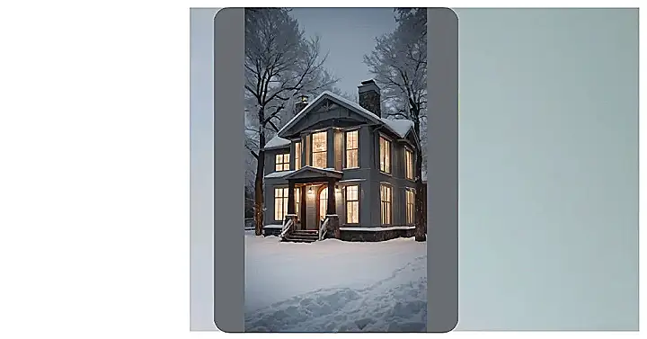 This picture is the perfect example of a winter house exterior! Imagine snuggling up inside that warm, inviting house, watching the snow fall while sipping hot cocoa. The warm glow of the lights peeking through the windows makes it look super cozy and like the perfect place to spend a snowy evening playing board games with your family, telling stories, or maybe even sneaking in some extra hot chocolate. It’s giving major “snow day” vibes!