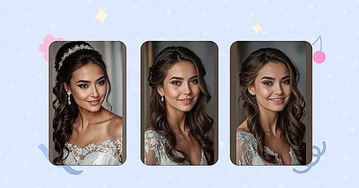 Check out this hair! It’s basically what happens when elegance meets a party on top. Those bouncy curls tumbling down? Absolutely perfect for a winter wedding where you want to look super glam without battling the wind doing its own thing with your hair. This half-up, half-down look is like saying, “Yes, I’m sophisticated, but also, let’s dance!” You’ll be sparkling brighter than any fresh snowfall, stealing the spotlight without even trying too hard.