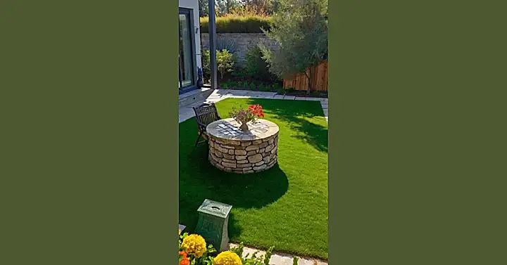 The flowers add a splash of color, but let’s be honest, the real star of the show is that awesome stone table. It’s like a miniature castle for your snacks, a throne for your afternoon tea party (or if you’re feeling adventurous, a base for a fantastic game of hide-and-seek). This isn’t just a garden; it’s a home-front headquarters for relaxation and fun, a tiny slice of heaven right outside your back door.