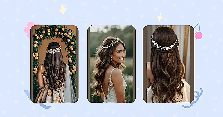 Seriously, who needs a tiara when you’ve got this? This hairstyle is giving major “I’m getting married and ready to party!” vibes. The loose waves add a touch of effortless chic, making you look like you spent hours getting ready (even if you didn’t – shhh!). The delicate headband adds just the right amount of sparkle without being too over-the-top. It’s the kind of hairstyle that’s both picture-perfect and comfortable enough to actually enjoy your big day.