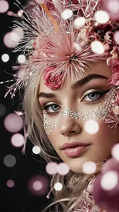 This isn’t just a picture; it’s practically a fairy tale exploded into a super glam selfie! With all those dreamy pink flowers, sparkly bits that look like they’re stolen from a disco ball, and eyes that could melt glaciers, this is peak ‘girly happy new year’ vibes. Seriously, this wallpaper is so extra, it’s basically giving your phone a promotion to “most stylish accessory in the room.” Get ready for your screen to sparkle brighter than your New Year’s Eve outfit (and maybe even last longer!).