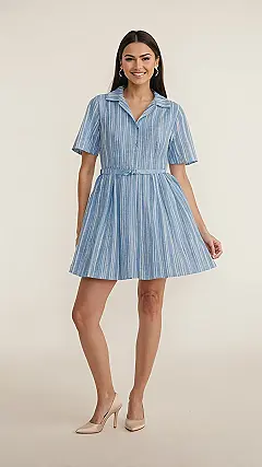 Who knew looking this cool could be as easy as slipping into your favorite shirt? This blue and white striped mini shirt dress is basically sunshine in clothing form, ready to make you smile just like the model. It’s got that perfect ‘I just threw this on and look fabulous’ vibe, probably because it’s so comfy you’ll forget you’re not still in pajamas. Just try not to get dizzy from all the compliments when you rock this breezy number!