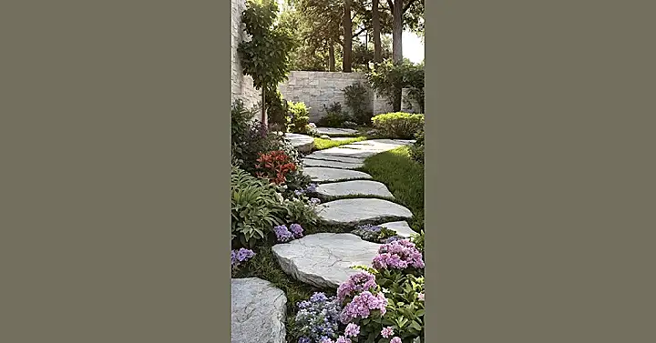 You can almost hear this garden whispering, “Come on in, kick back a little!” Those stepping stones are practically inviting you to hop across to that cool central plant, maybe for a quick photoshoot or just to ponder life’s great mysteries (like “Did I finish my homework?”). With those cheerful pink blossoms making everything pop, it’s the ultimate spot to hang out, read a comic, or even convince your friends that *your* backyard is cooler than theirs, no matter its size. It’s the kind of place where even your phone might forget to buzz for a bit.