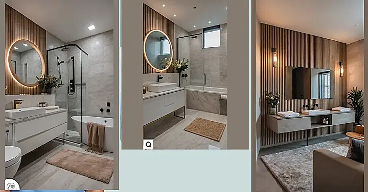 Whoa, hold up – is this even a bathroom or did someone accidentally upload a picture of a five-star spa retreat? The interior design here is so sleek, it practically whispers, ‘You deserve this.’ From the cool, earthy grey tiles that make you feel instantly calm, to the subtle glow behind the mirror that’s basically a permanent ‘good lighting’ filter, this space is designed for ultimate chill. You can almost hear the soft music playing, making even the most basic teeth-brushing feel like a high-end experience. It’s definitely a step up from dodging bath toys and questionable grout in your average home bathroom – this one’s got serious glow-up goals!