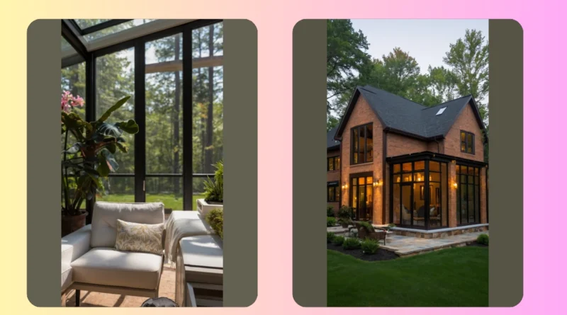 Seriously, wouldn’t it be awesome to have this sunroom? You could spend hours watching the leaves sway outside, feeling completely relaxed and surrounded by nature. It’s the perfect blend of modern style and comfy farmhouse charm, so you get the best of both worlds: sleek design and a warm, welcoming feel. Plus, those patterned pillows? They’re practically begging you to come and snuggle up! It’s like a hug from the sun, a total zen experience right in your own home.