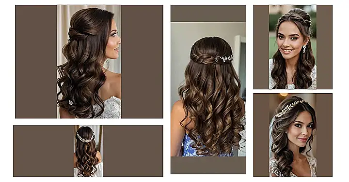 Seriously, if this doesn’t give you major hair inspiration, nothing will. It’s the kind of hairstyle that makes you want to grab a curling iron and try to recreate it yourself (although, let’s be real, it might take a few tries!). This look is perfect for anyone who wants to feel like a princess on their big day (or any day, honestly!). The combination of soft curls and sparkly accessories is just *chef’s kiss* perfection.