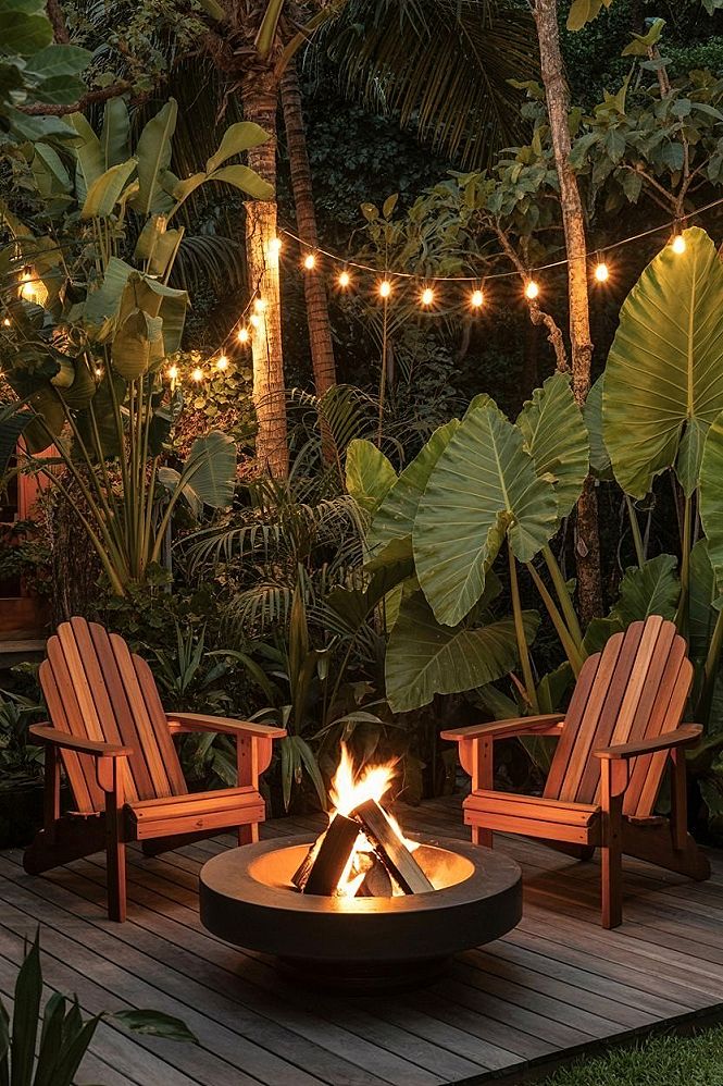#1 Dream Tropical Backyard Oasis: Fire Pit & Night Garden Magic